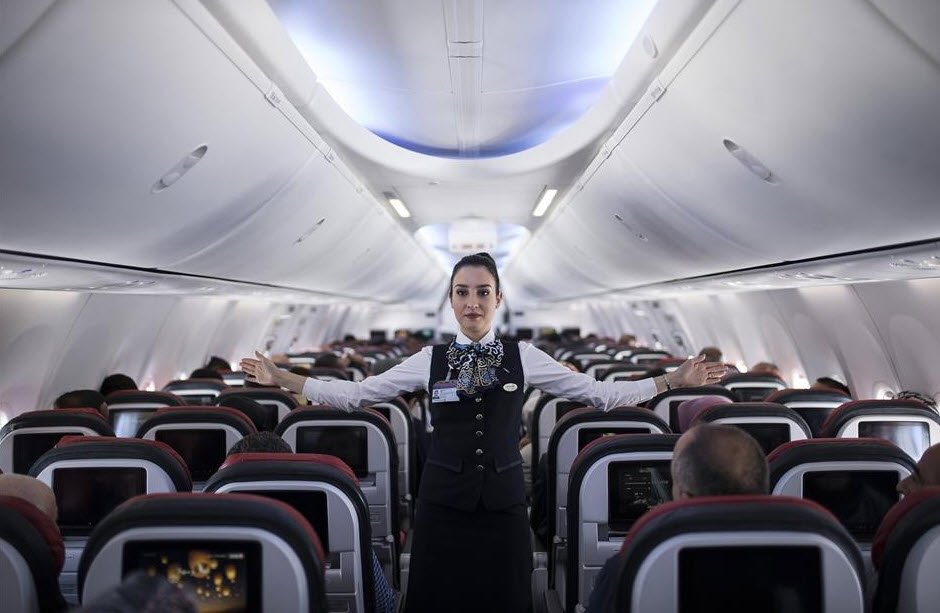 Kalkış öncesi yolcuların emniyet kemerlerini kontrol eden kabin personeli, emniyet kemerini takmadığını fark ettiği yolcuyu uyardı.