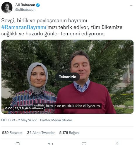 Deva Partisi Genel Başkanı Ali Babacan: Sevgi, birlik ve paylaşmanın bayramı #RamazanBayramı''mızı tebrik ediyor, tüm ülkemize sağlıklı ve huzurlu günler temenni ediyorum.